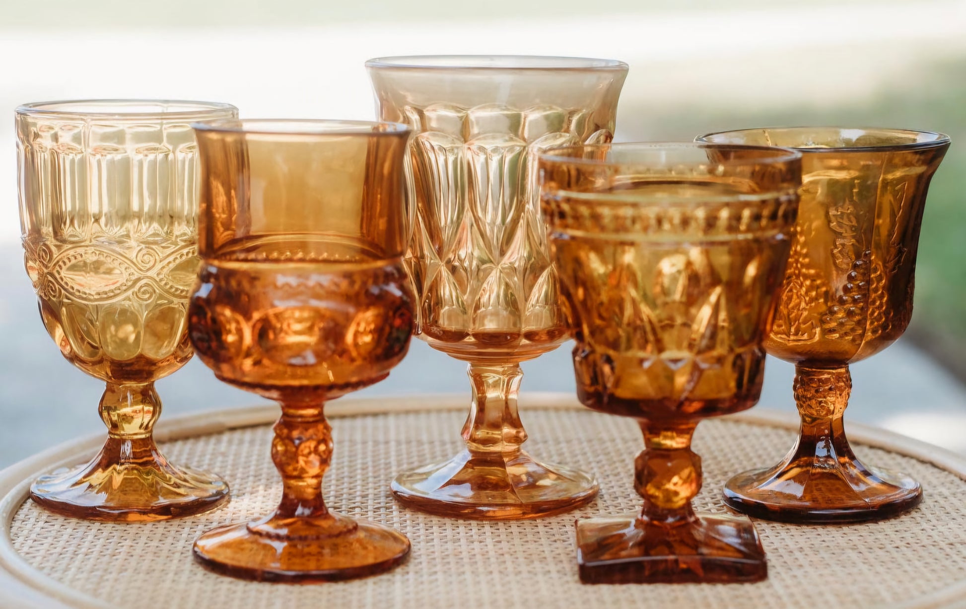 Vintage Mismatched Amber Goblets
